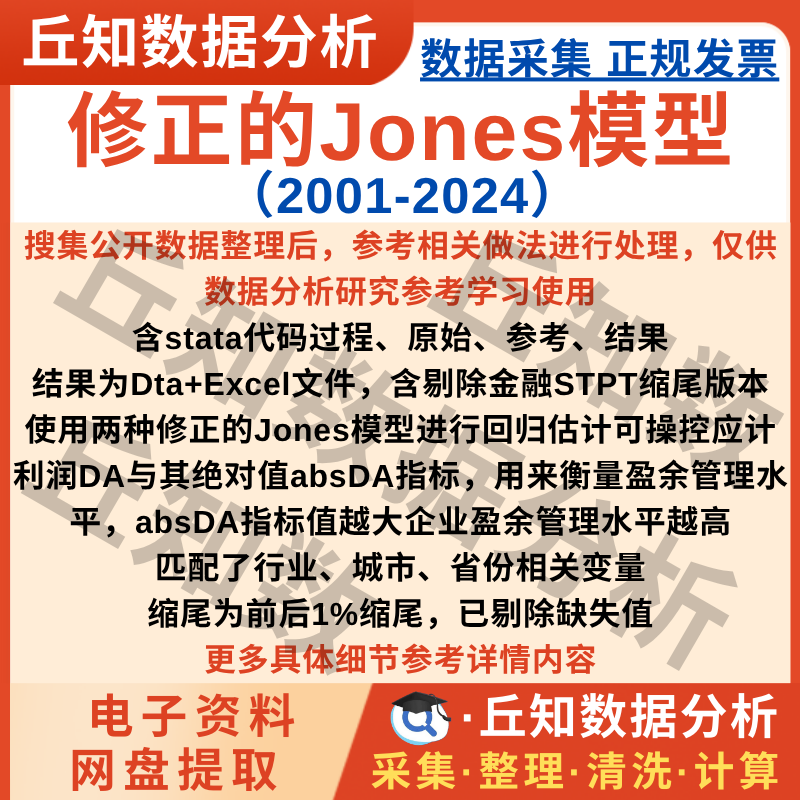 【普通数据】修正Jones模型2024-2001(两种)数据+代码含stata代码过程参考等