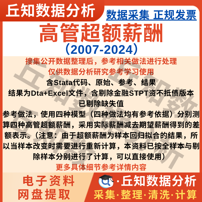 【普通数据】高管超额薪酬2024-2007上市公司数据Stata计算含代码四种参考结果