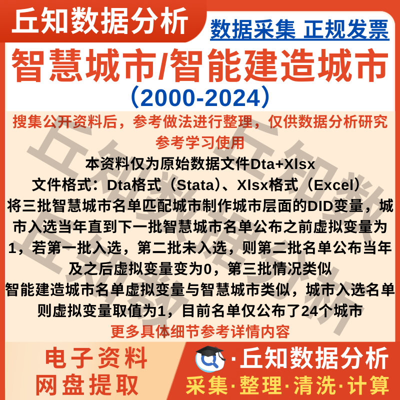 【普通数据】智慧城市DID智能建造城市2024-2000年虚拟变量含Stata、Excel格式