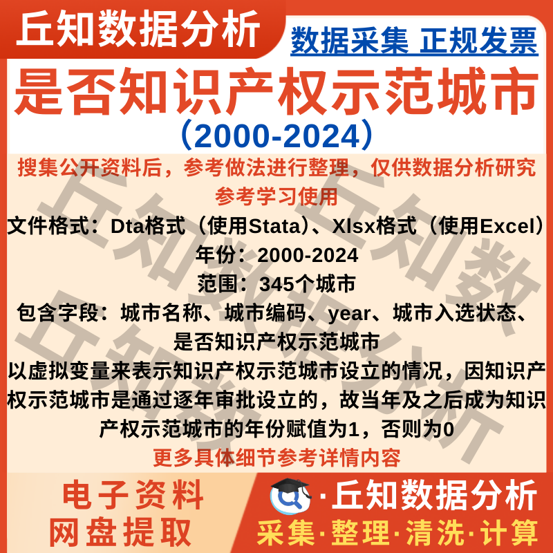 【普通数据】是否知识产权示范城市2024-2000含城市编码虚拟变量数据Stata格式