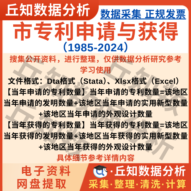 【普通数据】市专利申请与获得数2024-1985年Stata格式整理Excel表含城市编码