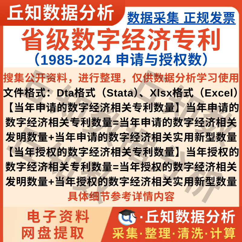 【普通数据】省数字经济专利申请与授权数2024-1985年Stata格式Excel省份编码