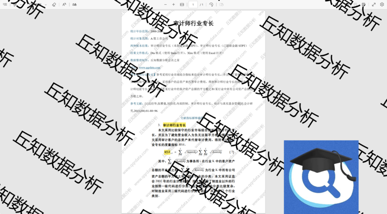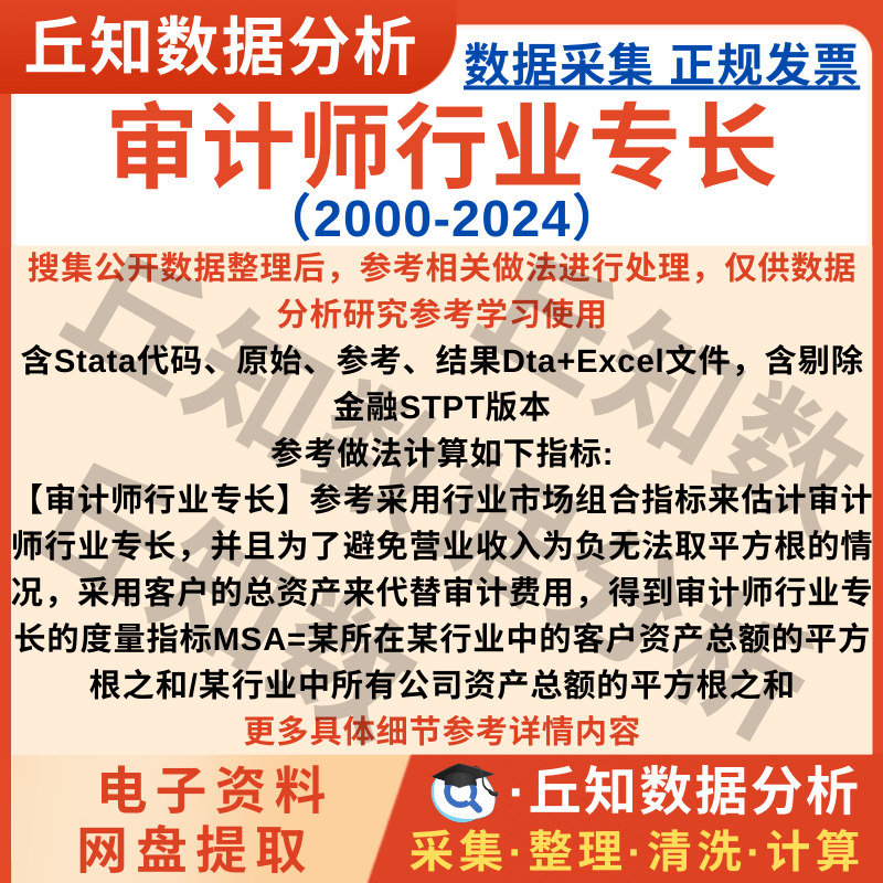 【普通数据】审计师行业专长2024-2000含stata代码上市公司企业数据剔除Excel