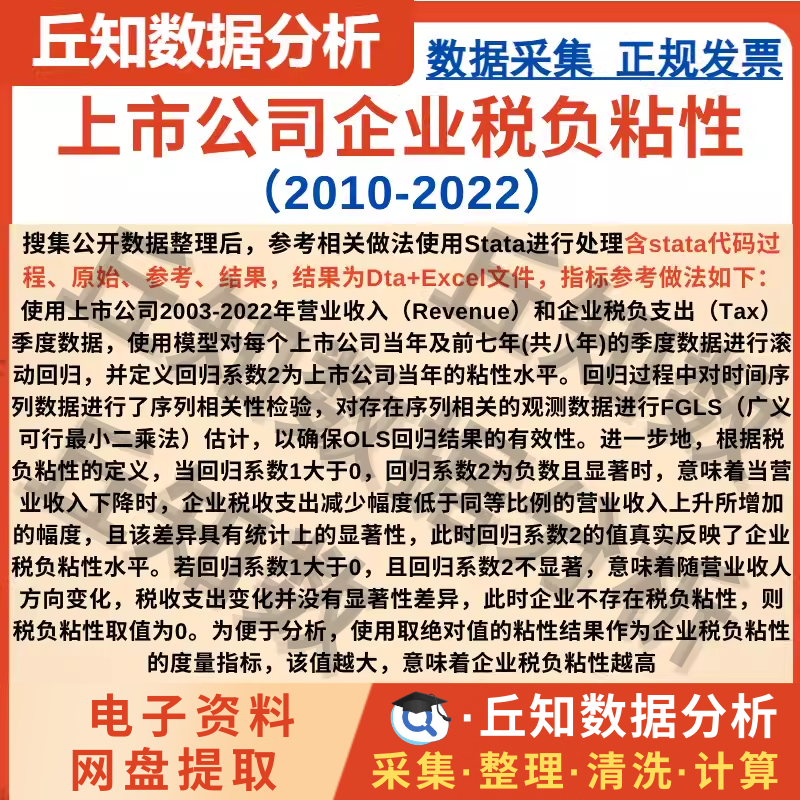 【普通数据】上市公司企业税负粘性2022-2010 含stata代码过程 原始 参考 结果