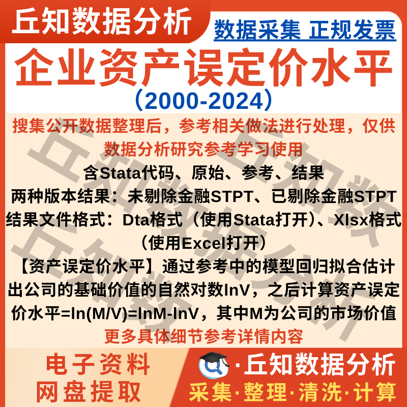 【普通数据】上市公司资产误定价水平2024-2000数据含Stata代码企业Excel剔除